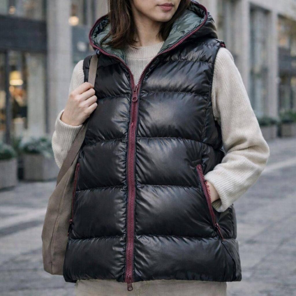 • フードまで繋がったフルジップベスト