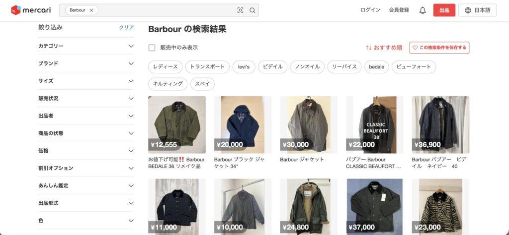 メルカリでバブアーを探す