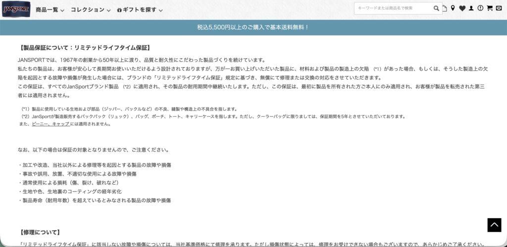 ジャンスポは、製造・素材・縫製の欠陥に対して“生涯保証”をつけています。