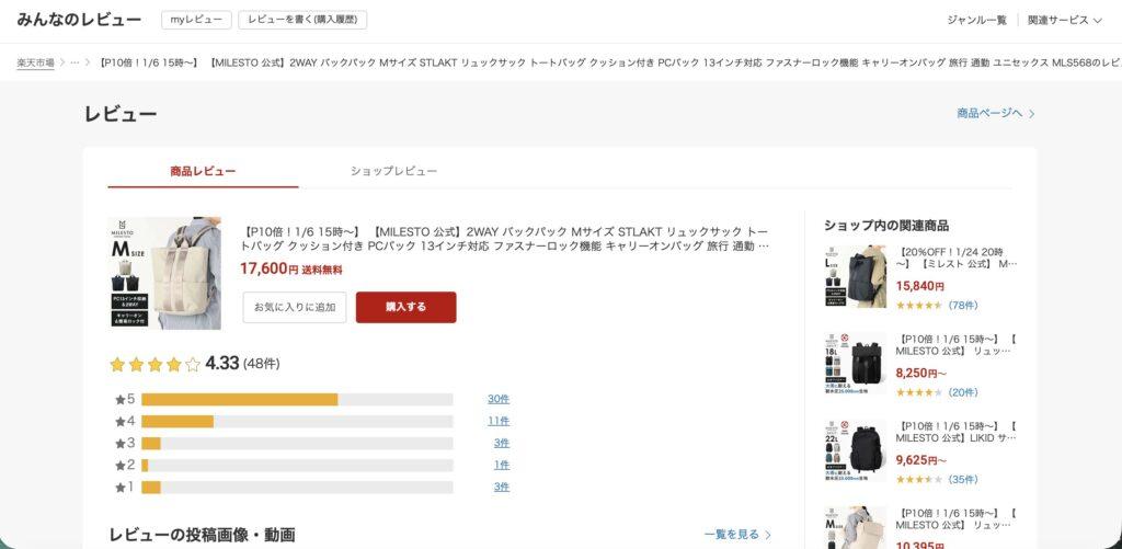 楽天の一番多いレビューを詳しく見る