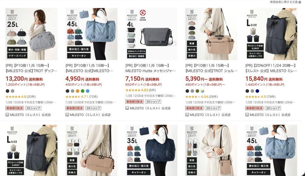 🔹 楽天公式ストア – MILESTOで検索