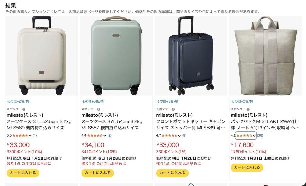 ② Amazonで「MILESTO STLAKT」を検索
